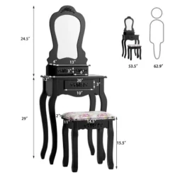 Costway Vanity Wood Makeup Dressing Table Stool Jewelry Desk Black