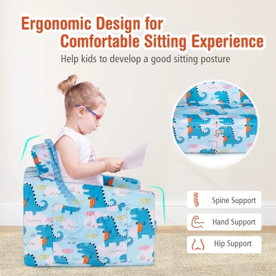 Costway 2-in-1 Convertible Kids Sofa To Lounger Flip-Out Chair W/Storage Pocket