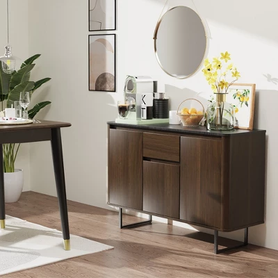 - Large Capacity & Versatile Storage: This buffet server sideboard features a spacious countertop, 1 deep drawer and 3 storage cabinets, which accommodate a decent amount of utensils and appliances. Additionally, 5-positon adjustable shelves inside the cabinets on both sides allow you to store items of different sizes in an enclosed space for max imum security.