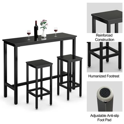 If you are in the market for a bar table set that can save your home space. Then, this is for you. Made of environmental friendly MDF board with melamine cover, the bar table set is scratch resistant and easy to clean. Constructed by iron structure, both the chair and table have large weight capacity. Besides, the pads on the feet not only increase stability, but also prevent floor from scratch. In addition, they are adjustable so that the bar table set can be used even on uneven ground. Except for home use, it is also suitable for commercial in restaurants, pubs, or other business places. Invite your friend to join your dining time.