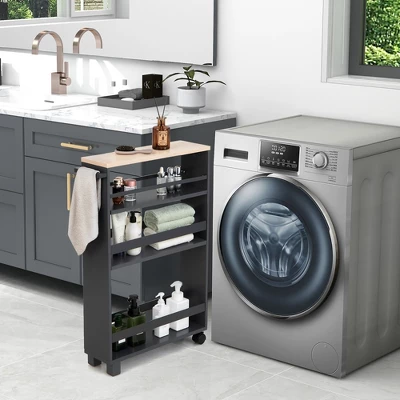 - Space-saving Slim Storage Cart: With the size of 21” x 6” x 31”, the slim storage cart works equally in any corner of your home, including kitchen, laundry, bathroom and living room. Additionally, simple and modern design integrates perfectly with interior decorations and shows your unique taste.