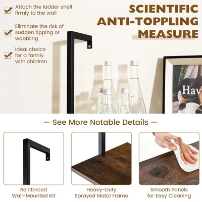 - Reinforced Wall-Mounted Kit: Unlike traditional bookshelves, the ladder shelf features a scientific fixation kit to eliminate the risk of sudden tipping or wobbling. Besides, using safety even on uneven floor is also well ensured, since it is stably supported by the wall.