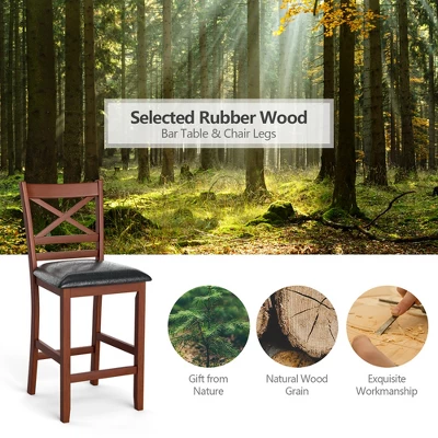 - 5 Pieces Bar Table Set: This set includes 1 bar table and 4 upholstered chairs, which is a perfect place for 4 people to gather for a meal. In addition, the counter height bar table set with vintage style fits any indoor decoration, making it suitable for residential places and commercial occasions.