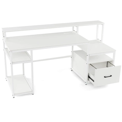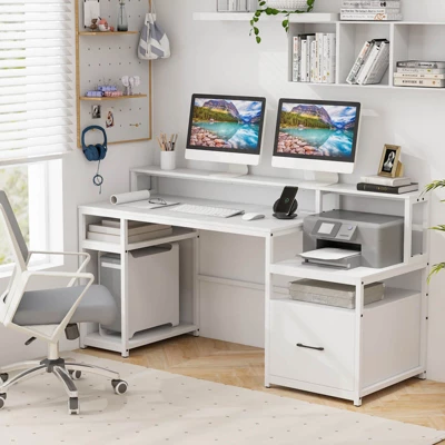- Multiple Storage Space: There are various open storage spaces: including a monitor stand, large tabletop, 2-tier shelf, printer stand and a narrow shelf to well organize your work and office supplies. Plus, the spacious file drawer holds A4 files or your other belongings.