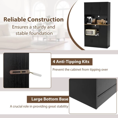 - Ensured Stability & Safety: The sideboard cabinet incorporates 4 anti-tipping kits and a large, sturdy base enhanced with protective foot pads. These features ensure a stable setup, safeguarding against accidents and maintaining your peace of mind.