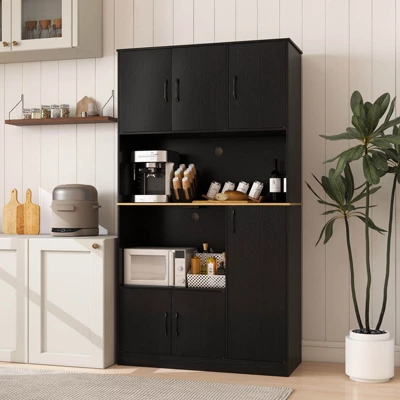 - Perfect Storage System: The pantry cabinet includes 4 enclosed cabinets and a 38” countertop, ideal for food preparation and appliance storage. This unit also has a microwave stand and 2 cable holes, simplifying your connectivity and kitchen management needs.