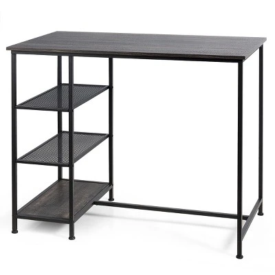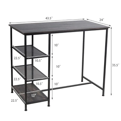 This bar table provides a great solution to maximize space utilization for people with limited space but need more storage places. Made from safety-painted iron pipes and high-quality engineered wood, this bar table is sturdy and durable for long time use. The 4 non-slip mats increase the stability of the table and protect the floor from scratches to a certain extent. The 3 storage shelves on the side are easy to place frequently used magazines, cups, spoons, etc. Our multifunctional bar table is especially designed for home kitchen, dining room and bistro and other occasion. It can be used as a computer desk, home desk, writing desk or office desk.