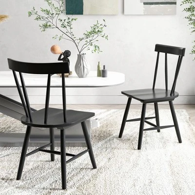 Costway Dining Chairs Set Of 2 Windsor Chairs Wood Armless Chairs With Solid Rubber Wood Black/White