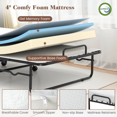 - Luxurious Comfort: The folding bed features a 4-inch thick memory foam mattress, combining gel memory foam and supportive base foam for optimal comfort and firmness. The breathable fabric cover and non-slip base enhance the overall experience.