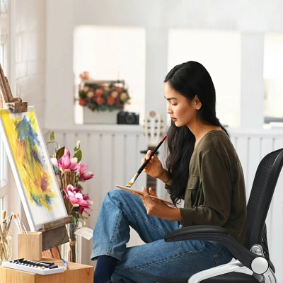 This is our brand new mid-back executive office chair which features sophisticated profile and exquisite workmanship to keep you stable and comfortable all day. The breathable mesh backrest provides ergonomic lumbar support to prevent back strain and muscle fatigue, while ensuring air circulation and improving comfort. The drafting chair allows you to obtain a comfortable seated position by adjusting the seat height and footrest height. Additionally, 360 degree swivel seat helps you better communicate with colleagues around you, which greatly improves your work efficiency.Certified by BIFMA for premium quality