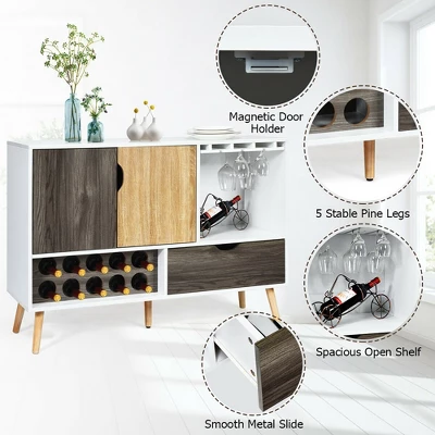- Chic Style for Versatility: With clean line and chic design, this wine sideboard can blend perfectly with your other furniture and decorative style of interior space. Exquisite wood grain adds a touch of modern and elegance. It is ideal for kitchen, dining room, bistro and more.