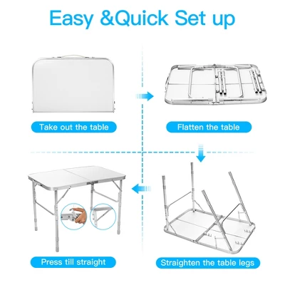 - [Easy to Set up & Fold Down] It is easy to set up this portable table within several seconds. Featuring lightweight and compact size, this table can be easily fold up to store away and save space while bringing much convenience to transport from one place to another.