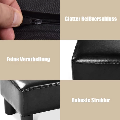 Our PU leather ottoman will be a perfect addition to your home with its elegant and modern appearance. The seat is padded with high-density sponge, which will provide you with a comfortable sitting experience. Solid wood frame with 4 sturdy legs contributes to reliable stability and durability. This ottoman can hold up to 330 lbs. Moreover, our multifunctional ottoman is suitable for lots of places, such as living room, bedroom and entryway. And it can be used as a footrest, an additional seat or a shoe stool to meet your different needs. Take our ottoman home right now!