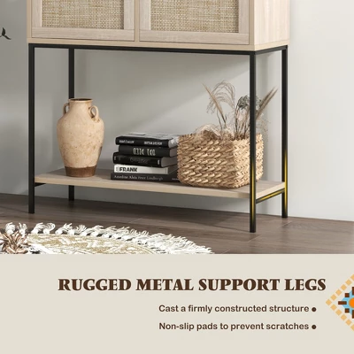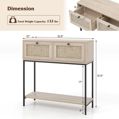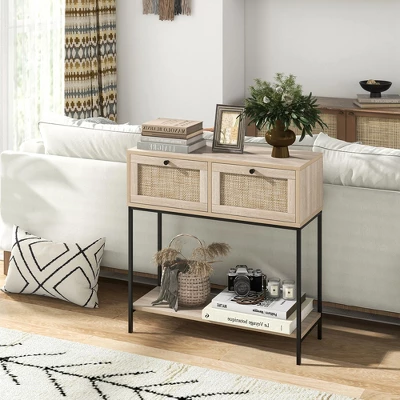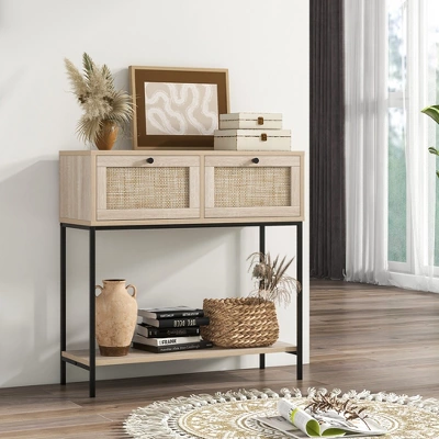- Multiple Storage Options: 2 rattan drawers provide enclosed storage space to keep your small items organized. In addition to the wide tabletop, the entryway table offers a bottom shelf, where you can display decor, plants, or store larger items like baskets.