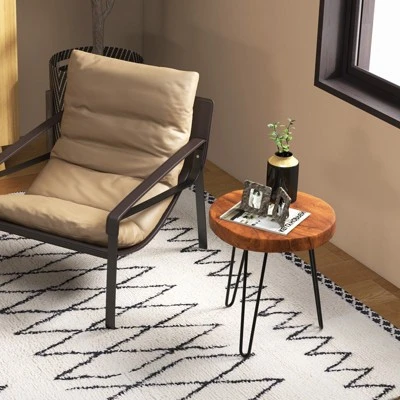 - Rustic Live Edge Design: The accent table also features live edges to showcase the natural beauty and unique grain patterns of the wood, making it a standout piece in any room. Each piece is unique with distinctive wood knots and streaks! Please allow slight errors in size due to the irregular shapes.