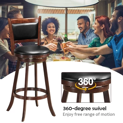 This is our beautiful bar stool which is taking the spotlight in any dining area. Rubber wood construction, built for everyday use. The 360 degree swivel seat allows you to swing around effortlessly. And the black PVC cushion will easy to wipe clean. Flared legs and circular footrest provides comfort and stability. The transitional design will undoubtedly merge seamlessly with any style kitchen, basement, game room, or bar. Just need a little bit of assembly.2 in 1 set at great price. Don’t hesitate to put them in your cart!