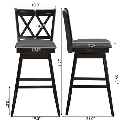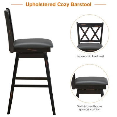 Costway Set Of 2/4 Barstools Swivel Bar Height Chairs With Rubber Wood Legs Black/White