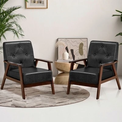 6” cushion made of PU leather and soft sponge provides you with super comfort. Ergonomic backrest, safety armrest, spacious seat and 100° backrest angle enable it to well support your back, waist, hip, arms and legs. With our single chair, you can fully relax yourself in your living room, reception room, office and study. Besides, it’s also designed with solid A-shaped frame, reinforced design and rubber wood legs, allowing for utmost sturdiness. It can support up to 286 lbs. Moreover, backrest button decoration and side screw hole decoration make it a real eye-catcher in your home or office. It’s easy to assemble and maintain in a few minutes.