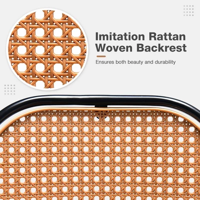Costway Set Of 2 Bar Stools Faux Leather Bar Height Kitchen Chairs With Rattan Back Brown/Green