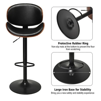 Our set of 2 bar stools adds a stylish feel to your home. Sturdy metal frame and a 17.5” large circular iron base with non-slip rubber ring make this bar stool super stable and safe, can withstand up to 265 lbs. Sponge filled cushions and backrests allow you to sit comfortably in your chair , with curved iron pedal you can put your feet on it to fully relax your leg muscles. What’s more, you can easily adjust the lever under the chair to adjust the height of the seat from 23.5” to 32” to meet your needs of different heights. 360-degree rotating seat allows you to chat with friends in all ways and it is suitable for many different occasions including bars, kitchen counters, coffee shops with its stylish look.