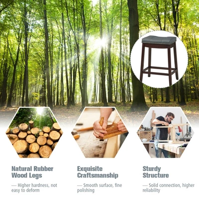 Are you eager to brighten up someplace with brilliant furnish? Then why not bring an effortlessly attractive look into your kitchen, restaurant or pub with this barstool. It will give you great satisfaction from contemporary design to unique saddle seat. The seat features soft upholstery and high resilience foam shall let you feel more comfortable. Meanwhile, compared with other wood, rubber wood features better durability and toughness, and that’s why it is adopts rubber wood legs. In this way, sturdy and thickened rubber wood legs will support you powerfully when you sit in the front of bar counter to enjoy a drink. 4-Sided footrest can not only rest your feet but also plays the role of reinforcement.