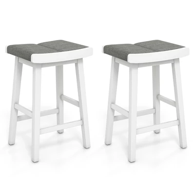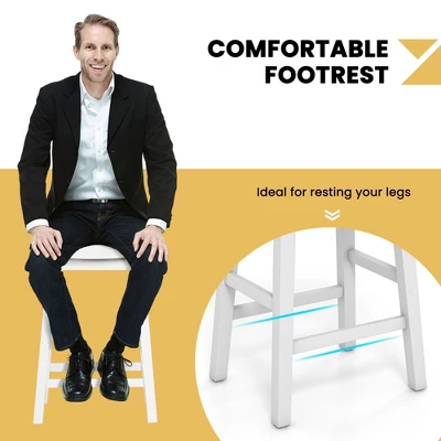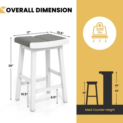Featuring the saddle seat and footrest design, our 2 pcs kitchen stools enable you and your family members to relax after working or studying. The classic color and clean lines help our stools match well with different room styles. Thus, they can be used in your kitchen, home bar, dining room or other indoor places. Supported by 4 rubber wood legs, each bar chair is not easy to wobble or collapse once assembled. The load capacity of each stool is 330 lbs. Besides, the space-saving backless design allows you to tuck away each stool under any counter or dining room.