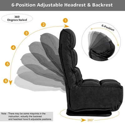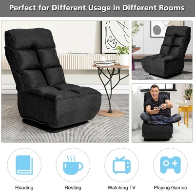 Costway Swivel Folding Floor Chair 6-Position Gaming Chair W/ Metal Base