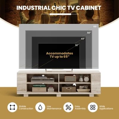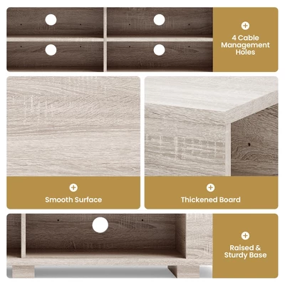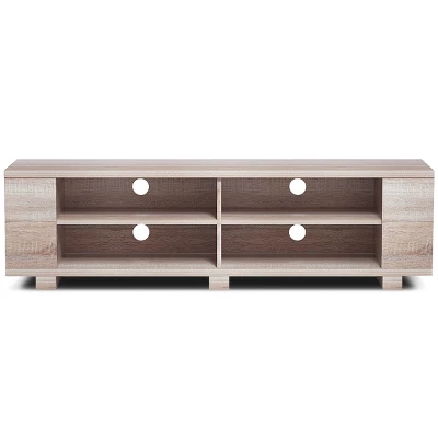 If you need a beautiful and durable TV stand, don’t miss out on our new product. This TV stand is made of MDF veneer, which has a firm structure and strong load-bearing capacity. You can put things like TV, vases and photo frames on it. The most important thing is that it has a large capacity of open storage space. Eight cabinets allow you to put a lot of things, which saves you a lot of space. It has four threading holes on the back that allow wires from TV set-top boxes, DVD players, game consoles and stereos to pass through easily and orderly. And it’s easy to clean and assemble, saving you a lot of time.