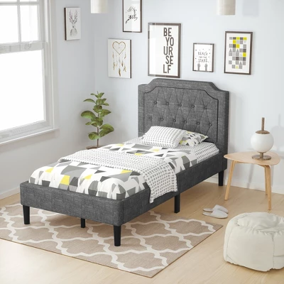 Costway Twin Upholstered Platform Bed Frame Linen Headboard Mattress Foundation, Grey -Costway GUEST 9f3fd793 a3f8 4747 b90f 134bd17be7e3