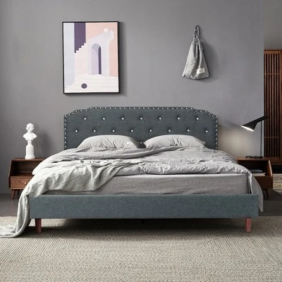 • Breathable Linen & Soft Sponge: Apart from a reliable construction, the upholstered bed frame also provides you with good comfort. The internal padded sponges with high density help distribute the pressure while you are leaning against the headboard. And the skin-friendly linen is beneficial for air circulation and heat dissipation.