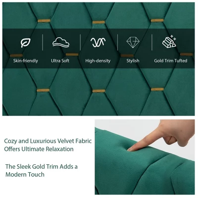 - Modern Bed Frame: The headboard and footboard are both tufted with gold trim which delivers a sleek and chic touch. The combination of green and gold color not only makes our bed frame stand out from ordinary black and gray ones, but also improves aesthetic ex tent of your bedroom.