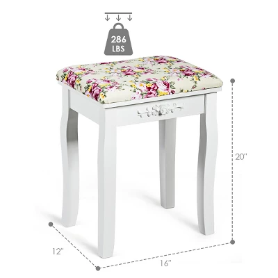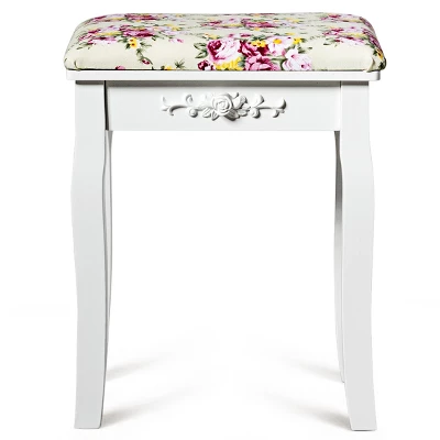 Our premium quality stool will be loved by people for its curved design and romantic rose cushion. Be made of MDF and Pine wood, this dressing stool is durable and sturdy. The thick cushion provides comfortable seat for you when dressing. The slightly curved legs and attractive cover with glamour rose pattern forming a sophisticated look. You can put all your clothes for the next working day on the stool or just sit comfortably in front of the vanity desk to do your make-up or style your hair, or using it as a piano stool on the performance stage. With its simple and elegant design, it can be easily match with any rooms whatever contemporary, modern, young or even classy. Do not hesitate to buy.