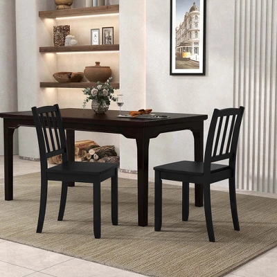 Our dining chair set includes 2 wooden chairs, and you can add more chairs to pair with different-sized dining tables. With their simple silhouettes and brown wood finishes, these farmhouse wooden chairs create a welcoming and stylish ambiance for various dining areas. More than that, it is constructed of natural rubber wood, ensuring long-lasting quality and stability for everyday use. And each chair can support up to 400 lbs. Other than that, it is designed with a curved ladder backrest, providing ergonomic support while keeping you comfortable and cool during long meals. Whether for residential and commercial uses, our dining chair set can be a perfect choice!