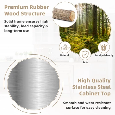 Material:Stainless steel + rubber wood + MDF