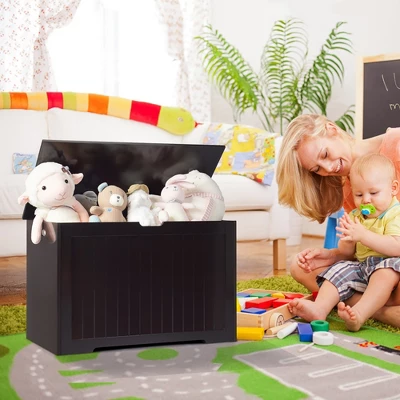 With 44 lbs bearing capacity, you can put the kid’s toys in this large storage space and make the room more tidy. It is carefully designed, with a groove at the front edge to prevent fingers from being pinched. 2 holes on sides make it easy to lift the box and move it to the place needed. Flip-top lid provides convenient opening for taking out or putting in items, saving your energy. It is high-quality, made of durable and safe MDF material, for long service life. The elegant appearance effortlessly coordinates with your existing home décor and is suitable for entryways, bedrooms, playrooms, etc.