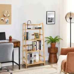 Costway 4-Tier Bookshelf Bamboo Ladder Shelf Bathroom Shelves Storage Plant Stand Rack