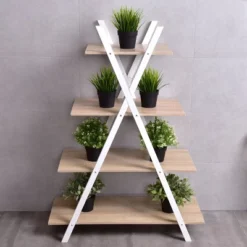 Costway 4-Tier Bookshelf Storage Display Shelves Bookcase Ladder X-Shape Brown/Black