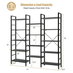 Costway Triple Wide 5-tier Bookcase Large Bookshelf Display Storage Shelf Vintage Black