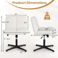 Costway Armless Office Desk Chair Modern Swivel Vanity Chair With Adjustable Height Grey/Brown/Beige