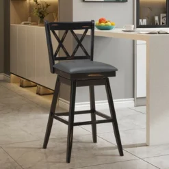 Costway Set Of 2/4 Barstools Swivel Counter Height Chairs W/Rubber Wood Legs Black/White