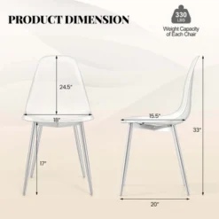 Costway Modern Dining Chair Set Of 4 Plastic Shell Hollow WithMetal Legs For Living Room