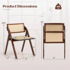 Costway Foldable Dining Chairs Set Of 2/4 With Woven Rattan Backrest & Seat Rubber Wood Frame Brown