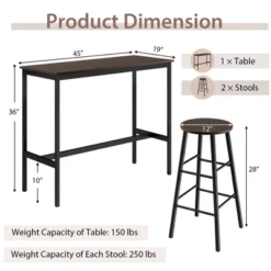 Costway 3 Piece Bar Table Set Pub Table And 2 Stools Counter Kitchen Dining Set