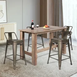 Costway 5 PCS Dining Table Set Kitchen Rectangular Counter Height Table W/ 4 Bar Stools