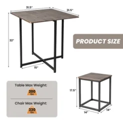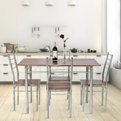 Costway 5 Piece Dining Table Set 29.5″ With 4 Chairs Wood Metal Kitchen Breakfast Furniture Brown