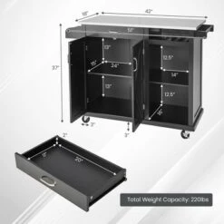 Costway Kitchen Island 2-Door Storage Cabinet Stainless Steel Top W/ Drawers