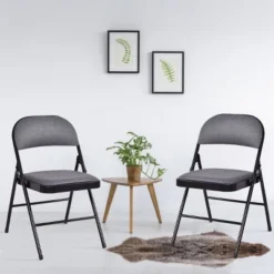Costway Set Of 4 Folding Chairs Fabric Upholstered Padded Seat Metal Frame Home Office