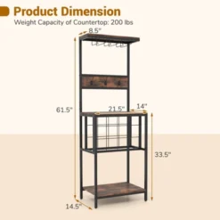 Costway Tall Freestanding Bar Cabinet Kitchen Buffet W/ Glass Holder & Adjustable Shelf