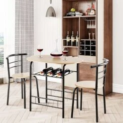 Costway 3 Piece Dining Set Compact 2 Chairs And Table Set With Shelf Storage