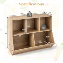 Costway 5-Cubby Kids Toy Storage Organizer Wooden Bookshelf Display Cabinet Natural/White